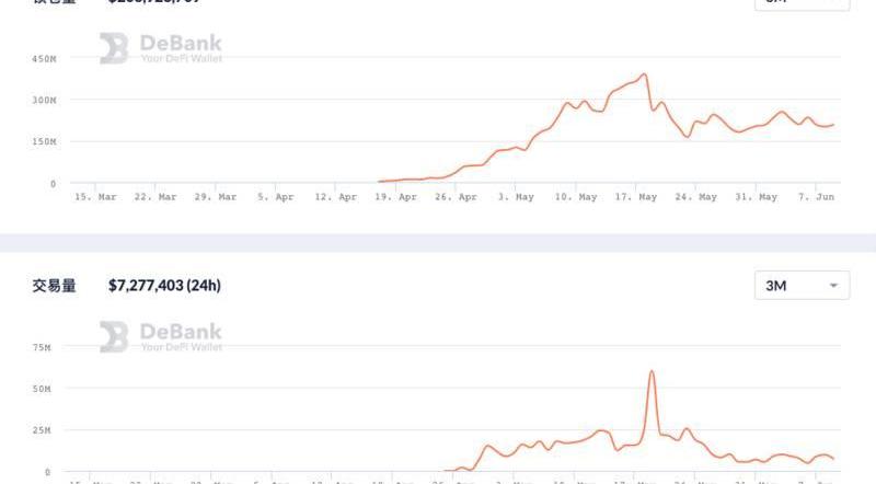 Solana生態內的龍頭DeFi也不難猜——Raydium。DefiLlama數據顯示,Raydium當前的鎖倉量為5.15億美元,雖然也占據了整條Solana生態?TVL的過半比例,但較5月3日的歷史高點9.6億美元已近乎腰斬。