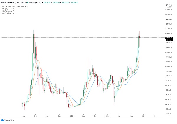 月線將意義重大,因為如果比特幣價格保持在13791美元以上,它將創下比特幣歷史上的最高收盤價。