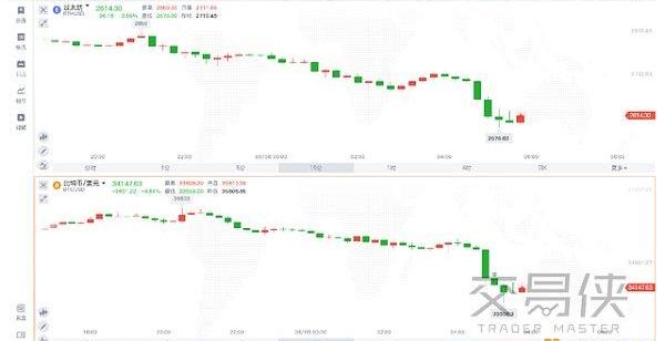 XRP/HKD-3.56%受MicroStrategy將發行4億美元債券以購買更多比特幣的消息影響,比特幣周一日內曾逆轉周末頹勢小幅走高,然而北京時間周二凌晨05:15左右,比特幣突然跳水,數分鐘內跌超2000美元,下破34000美元/枚,日內跌超5%。同時,以太坊跌破2600美元/枚。