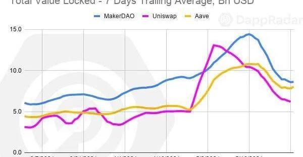 MakerDAO社區做出了重要決定,以減輕行業動蕩帶來的風險。首先,協議引入了穩定幣作為抵押品。此外,風險參數也進行了調整。最近的加密貨幣崩潰沒有給以太坊用戶帶來任何重大問題。Uniswap,Compound,Aave和MakerDAOdapps按照設計工作。