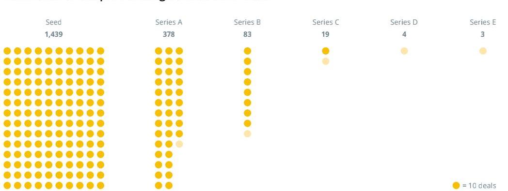 CointelegraphResearch數據指出,盡管目前每年都有很多項目獲得種子輪融資,但能夠持續獲得A、B、C、D和E輪的項目少之又少。