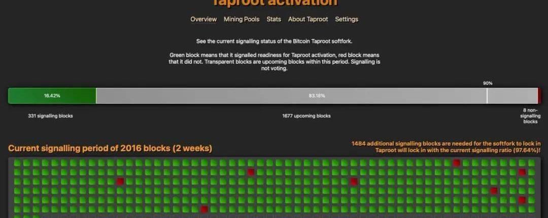 圖22?2021年6月1日Taproot比特幣協議更新的礦工信號處理狀態