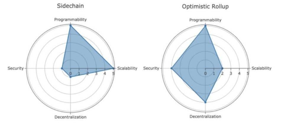 所以從他們的視角中來看,側鏈方案和OptimisticRollup的對比類似于下圖。