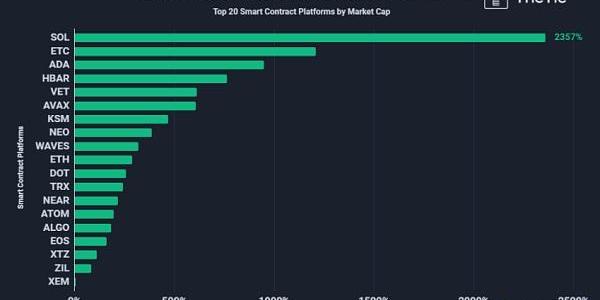 Solana不僅成為第五大智能合約平臺,而且到2021年為止,它一直是性能最好的智能合約平臺。SOL的年回報率為2357%,完全超過了ETC和ADA的漲幅。