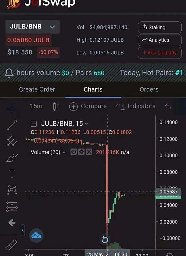 如果沒有完全理解Uniswap背后的數學,那為什么要去模仿呢?為了快速得到資本的青睞?還是害怕錯過熱點帶來的流量?我們無法阻止模仿行為的發生,但我們很快看到了結果:BurgerSwap損失700萬美元,$JULB短時下跌逾95%以上。