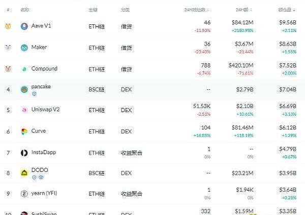 鎖倉量排名前十的借貸平臺排名來源:DeFibox