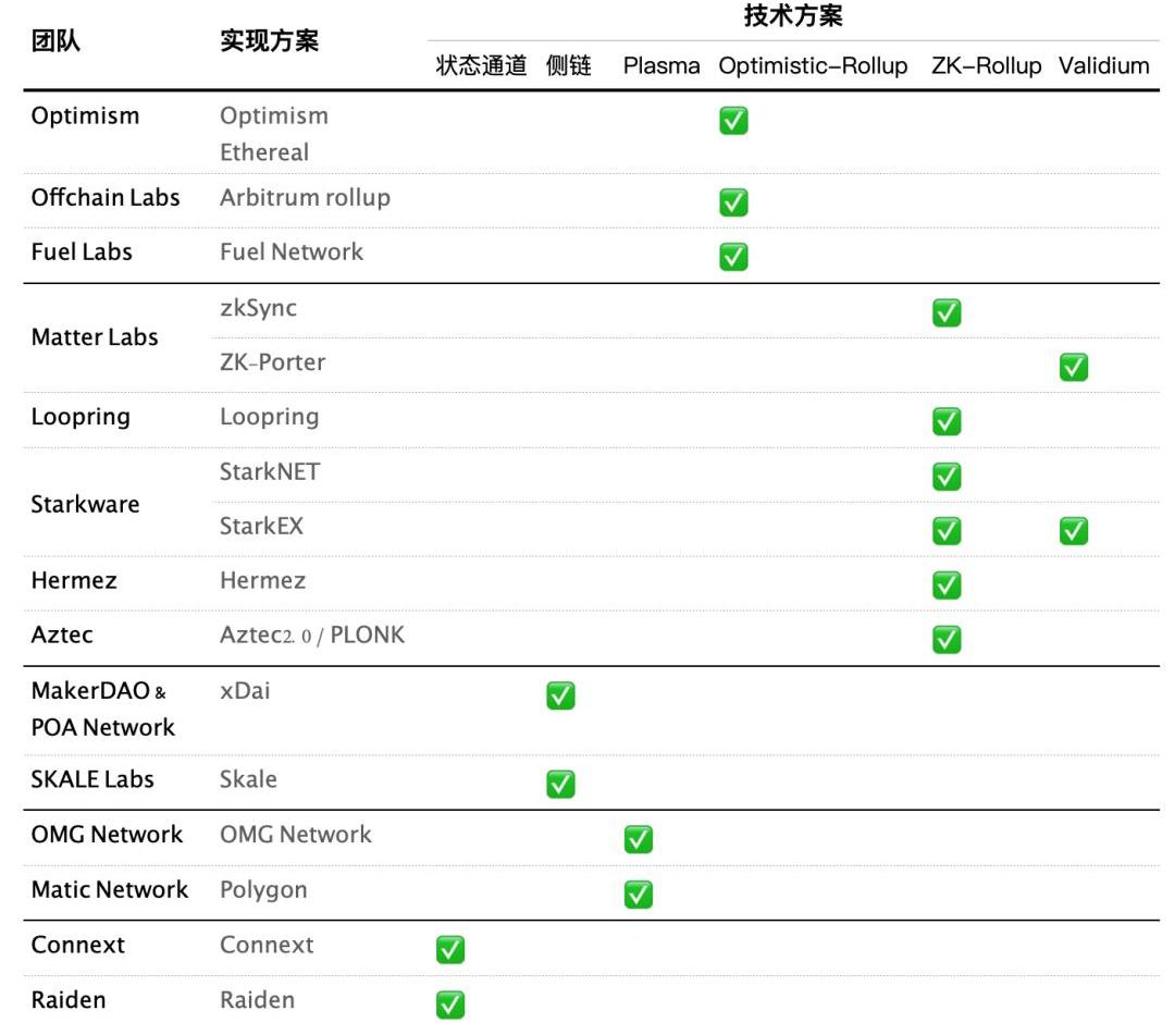 各種技術方案名稱,團隊名稱,網絡名稱,dApp應用名稱混在一起,使得讀者很難建立清晰的Layer2版圖,如果問這些要素有多少種組合可能性,答案可能需要用到a*b*c*d這樣的公式,這也是Layer2難懂的原因。下面將用圖表形式描繪Layer2圖譜,盡量使用單一維度來劃分,而不是將技術方案、團隊、實現方案混在一起。
