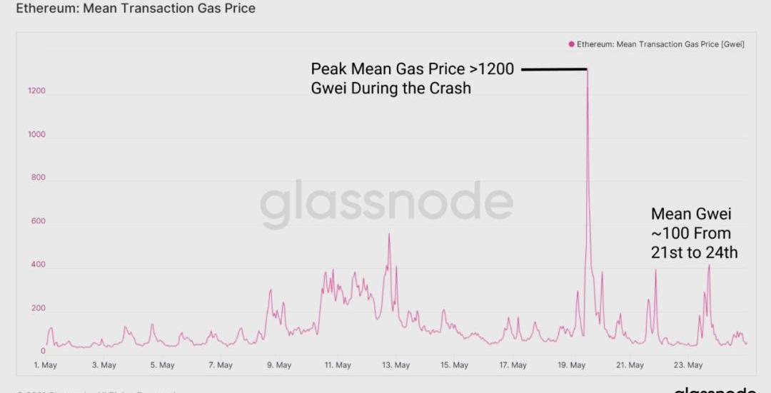 暴跌后的幾天,Gas價格自此大幅下降。穩定轉讓的Gas消耗量下降了>60%,Uniswap的Gas消耗量從高峰期下降了約50%,而套利的機會自暴跌后大多恢復到正常水平。在整個崩盤期間,1200的平均Gwei的峰值使交易成本超過500美元/一次交換。在平均Gwei<75的情況下,小的交易者現在可以按照他們認為合適的方式進行再平衡。