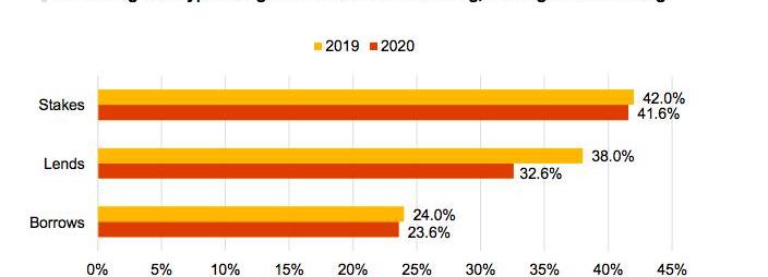 大約一半的加密對沖基金交易衍生品,但賣空已大大減少,2020年從48%降至28%。加密對沖基金還參與了加密貨幣質押,貸款和借款。