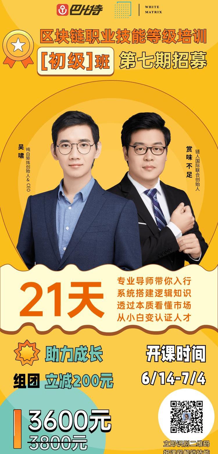 目前,“區塊鏈技術軟件開發師”初級培訓班第七期正在招募中,現在組團購課立即可減200元。