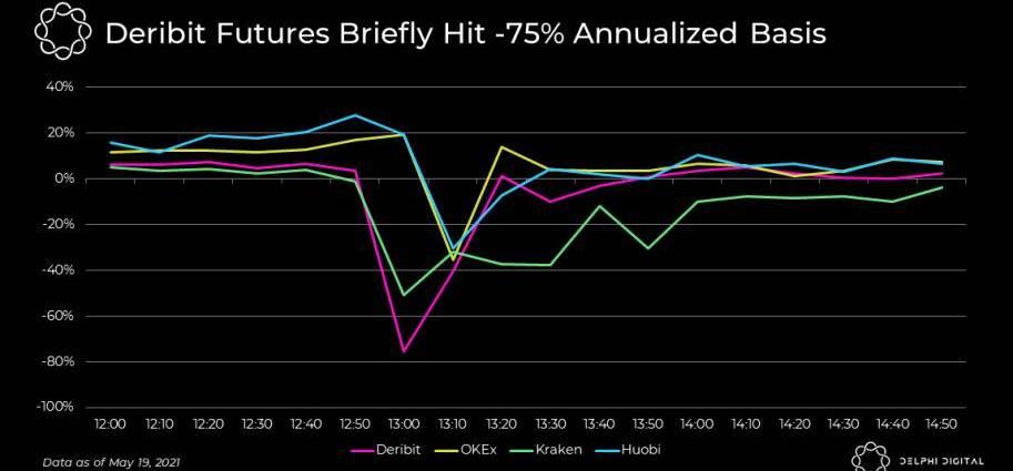 5月19日,Deribit期貨交易收益縮水75%,有超20億美元的比特幣頭寸被清算。
