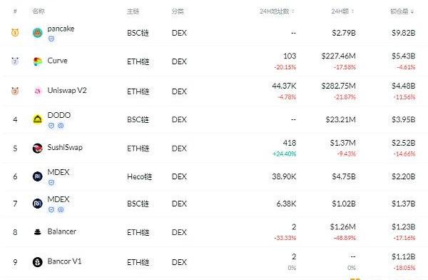 過去24小時去中心化交易所的交易量數據來源:Debank