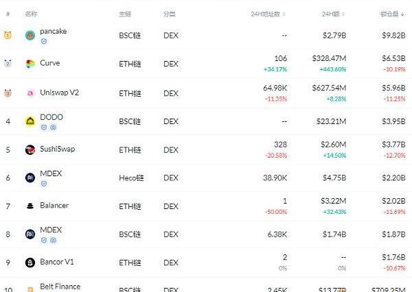 過去24小時去中心化交易所的交易量數據來源:Debank