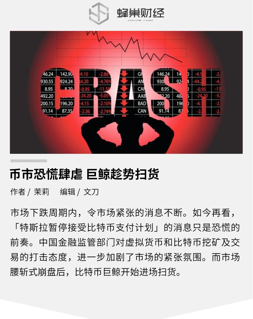 國內一些涉及比特幣挖礦和交易的商業體正在應對,期間也出現了很多小道消息及謠言。恐慌在市場下跌中持續蔓延、傳導,又進一步引起資金出逃,市場下跌。而在市場崩盤時,比特幣巨鯨開始進場掃貨。