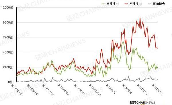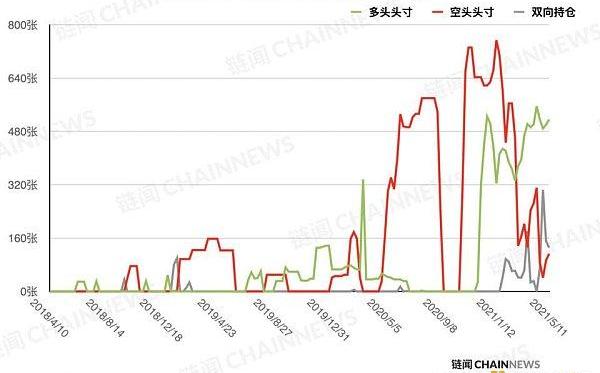 分項數據上來看,規模最大的經銷商持倉多頭頭寸保持0張不變,空頭頭寸自0張上漲至42張,多空雙向持倉保持0張不變。經銷商賬戶在價格創歷史新高的情況下逆勢加碼空單,精準地預見到了統計周期結束后的回調行情,在對于ETH的判斷上相比BTC更為準確。
