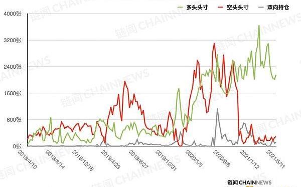 散戶持倉方面,多頭頭寸自997張上漲至1180張,創歷史新高,空頭頭寸自397張同步上漲至463張,同創歷史新高。散戶在最新統計周期內進行了大幅度的倉位增持,意味著ETH價格的快速上漲吸引了大量散戶資金的入場,而這也是散戶情緒化的一種表現。