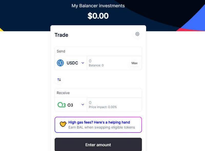 如果您選擇其他資產,Balancer將自動將其轉換為USDC,然后交易為O3。額外的步驟可能會導致交易費用的增加。