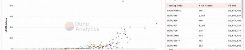 上圖:當前尚未使用UniswapV3的一些最受歡迎UniswapV2交易對