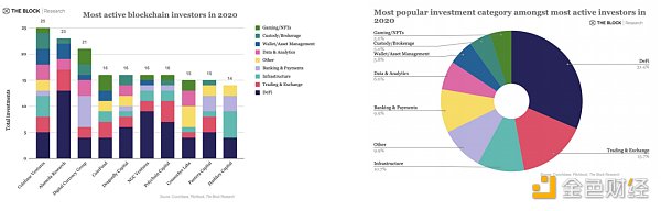 自Block開始其年度活躍基金評選之后,多年以來,2019年最活躍的10只基金中有6只再次躋身2020最活躍基金之列。這些基金公司包括Coinbase Ventures、Digital Currency Group、Dragonfly Capital、NGC Ventures、Pantera Capital和Polychain Capital。
