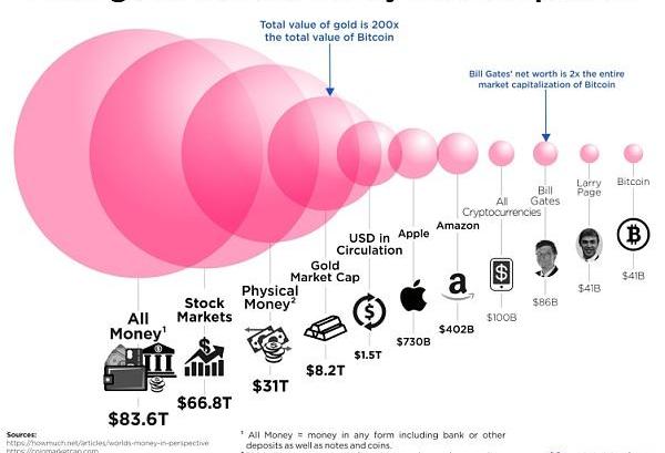 與藝術品和收藏品、股票、債券、衍生品或黃金等傳統資產相比,加密貨幣是一個相當新興的市場。這個新資產類別占當今全球財富總額的不到1%?的千分之一。