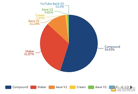 DeFi借貸平臺借款占比,金色財經制圖, 數據來源:Debank