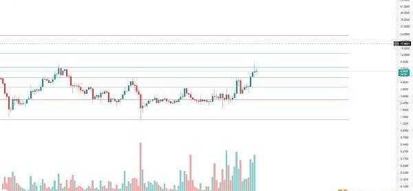 大幅回落,仍未破前期提示的5.7美金強支撐,趨勢依舊向上,回落附近依舊可逢低布局,周線壓制7.9美金,前期已多次提示,目前還未有效突破,還需時間和空間的整理,有耐心的持有。