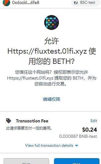 2)在彈出的MetaMask中授權對話框中點擊確認,即可完成抵押;