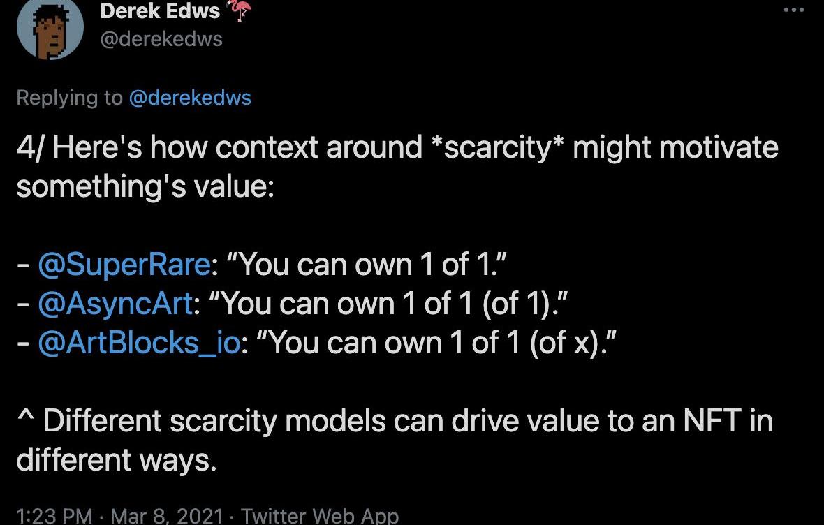 盡管數字藝術作品的影響力無疑在增長,但與實體作品的創作者相比,許多數字藝術作品的創作者并沒有同樣的盈利潛力。在歷史的進程中,基于特定物品所帶來的物質稀缺性體現著創造性作品的價值。