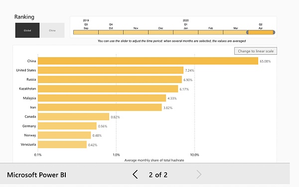根據劍橋另類金融中心設計的比特幣采礦地圖,在 2020 年第二季度,哈薩克斯坦的采礦業占比特幣平均每月哈希率的約 6.17%,僅略低于俄羅斯(6.9%)和美國(7.24%),而中國仍然是無可爭議的第一名(約 65%)。