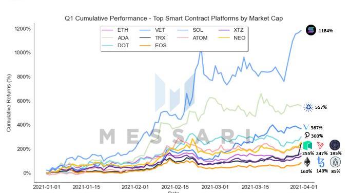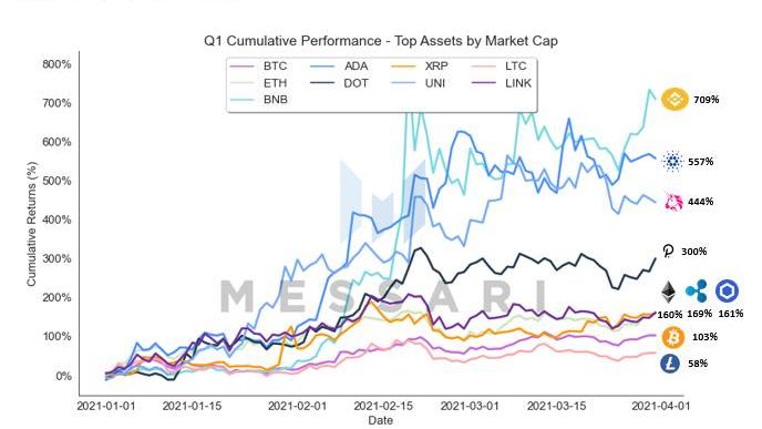 2021年第一季度,加密資產表現良好。根據Messari的分類法,所有的細分領域都取得了優異的回報。本文將審視整體市場的季度表現,并對每個領域中表現最好的一些資產進行深入分析。