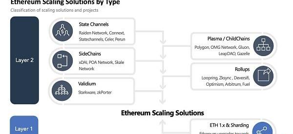 以太坊朝著這個目標的演變看起來像是幾條分開的道路,有時會鏈接在一起,通向相同的目的地。每個擴展解決方案看起來都類似于樹或中心輻射模型,但是每個解決方案都有其自己的細微差別,可以解決特定的用例。解決方案主要有兩類: