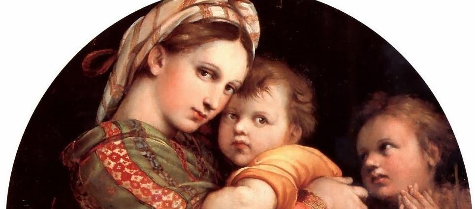 作者是拉斐爾,他筆下的圣母像不同于以往的色彩暗冷,抽象蒼白,而是充滿柔情和母性,給圣母賦予了人性,讓人感受到的不是距離感,而是親切感。