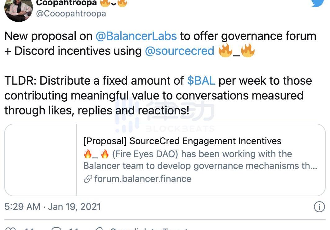 一個急需的改善就在于承認積極參與的作用并抑制搭便車。目前已經有幾個協議正在為論壇和Discord聊天的貢獻者設計激勵機制。這個過程最近被稱為「治理挖礦」。這個概念已經被Maker,Balancer和Indexcoop社區引入。
