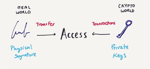 歸根結底,持有密碼學貨幣就是持有私鑰。在現實世界中,擁有實物財產通常指的是擁有寫有你的名字的契據或收據,但是在密碼學貨幣世界中,擁有某個資產就是掌握某個信息。簡言之,掌握了私鑰就等于擁有了密碼學資產。