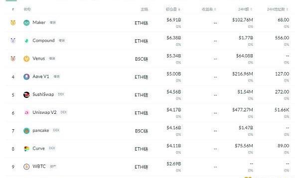 鎖倉量排名前十的借貸平臺排名來源:DeFibox