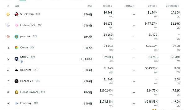 過去24小時去中心化交易所的交易量數據來源:Debank