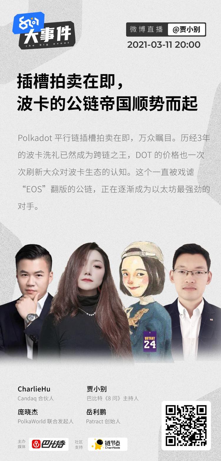 今晚,我們邀請到PolkaWorld聯合發起人龐曉杰、Patract創始人岳利鵬、Candaq合伙人CharlieHu做客直播間,為我們解答:波卡插槽拍賣成功會為波卡帶來什么?2021年波卡又有哪些大事件直播關注?