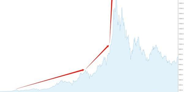 最極致的表現當然還是比特幣,2017年,比特幣從1000美元漲到5000美元用了8個月,從5000美元漲到1萬美元用了3個月,從1萬美元漲到2萬美元只用了半個月。