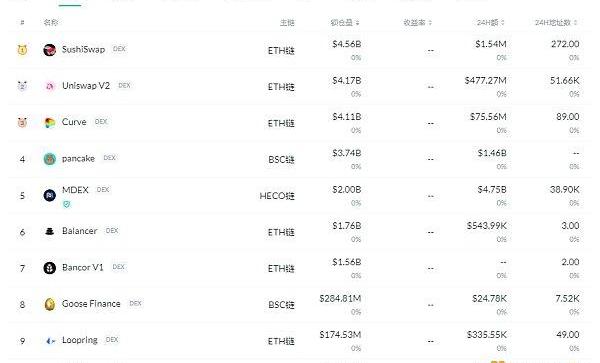 過去24小時去中心化交易所的交易量數據來源:Debank