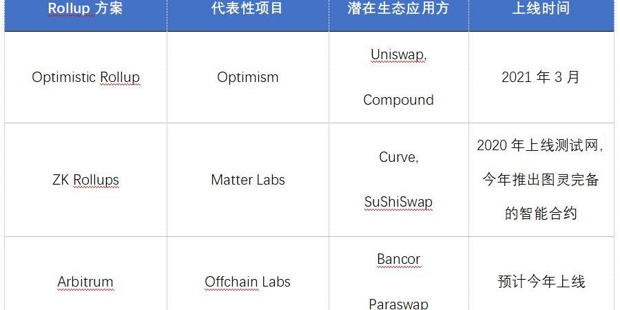 表1.Rollup方案進展情況