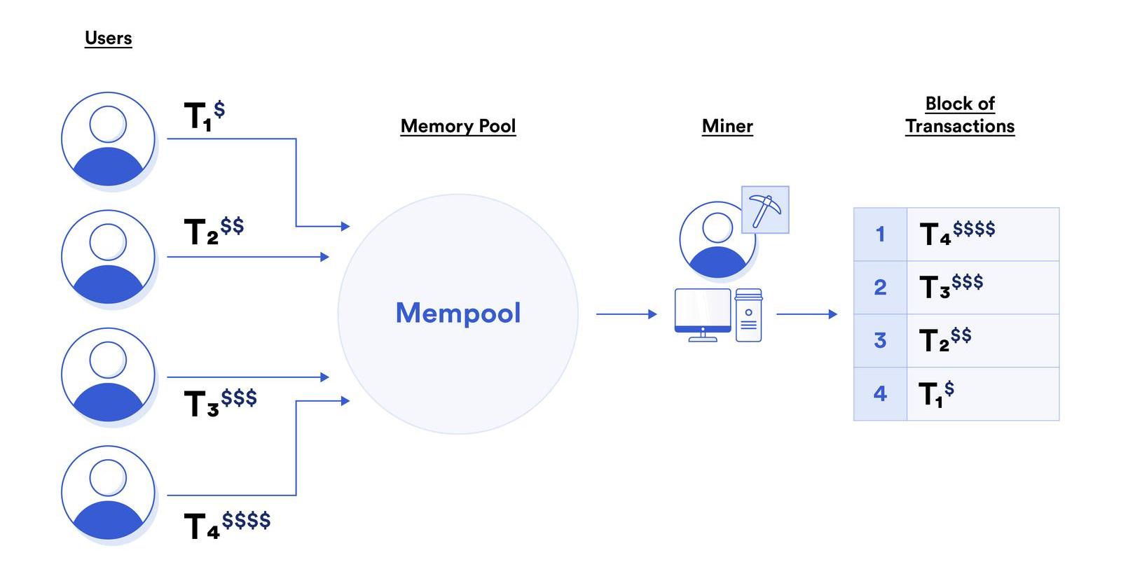 由于每個區塊只能包含有限數量的交易,礦工在選擇內存池中哪些待處理交易時擁有完全的自主權,內存池是礦工在鏈下存儲未確認交易的位置,它們將包含在自己的區塊中。雖然為了獲得最多的利潤,礦工通常以最高的gas價格來處理交易,但這并不是網絡的要求。因此,礦工可以利用他們任意對交易進行重新排序的能力,從用戶那里獲得額外的利潤,從中創造出來的價值就被稱為礦工可提取價值。