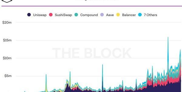 XRP/HKD-1.83%TheBlock對去中心化金融市場上的頭部協議收入狀況進行了分析,總體而言,許多DeFi協議都成功獲得了可觀收入。不過,雖然DeFi行業出現了流動性挖礦等一系列新舉措,但大部分收入仍然流向協議供應方。另外值得注意的是,除了Balancer之外,所有DeFi協議在2021年的前兩個月都創下月度收入記錄。