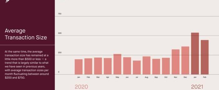RobinhoodCrypto?沒有交易規模限制,但文章稱用戶的平均交易規模約為?500?美元。提供的圖表顯示,上一年的平均交易額約為?200?至?250?美元,即目前規模的一半。