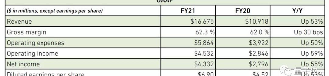 總營收達166.75億美元,與2020財年的109.18億美元相比增長53%。