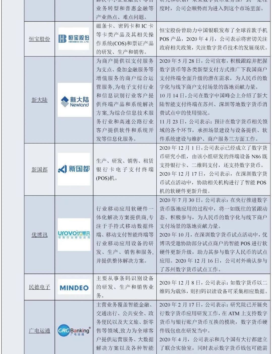 3、2019-2020年,數字貨幣研究所與商湯科技、京東數科等十余家單位簽訂了戰略合作協議,合作機構覆蓋兌換流通各個環節,且均是所在領域的領軍企業。