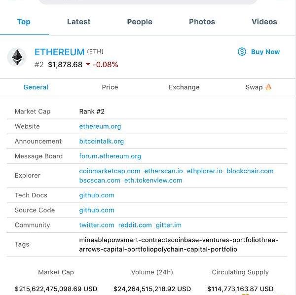 以ETH為例,搜索#ETH,就能看到ETH的基礎信息、價格、所在交易所以及Swap。