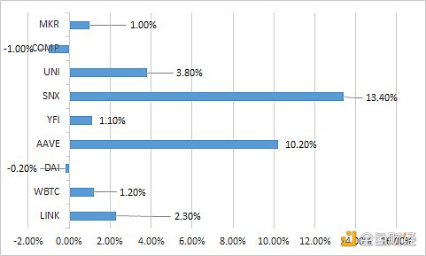 市值前十幣種漲跌幅,金色財經制圖,數據來源Coingecko