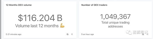 DEX的年交易總量超過1160億美元,source:DuneAnalytics
