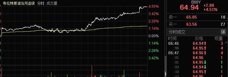 隔夜油價繼續狂漲,布油價格接近65美元,漲幅超4.5%。