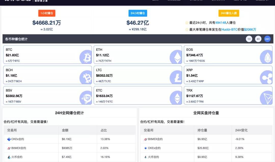 另據比特幣家園數據顯示,24小時內,數字貨幣合約共爆倉299億人民幣,涉及幣民49萬多人。
